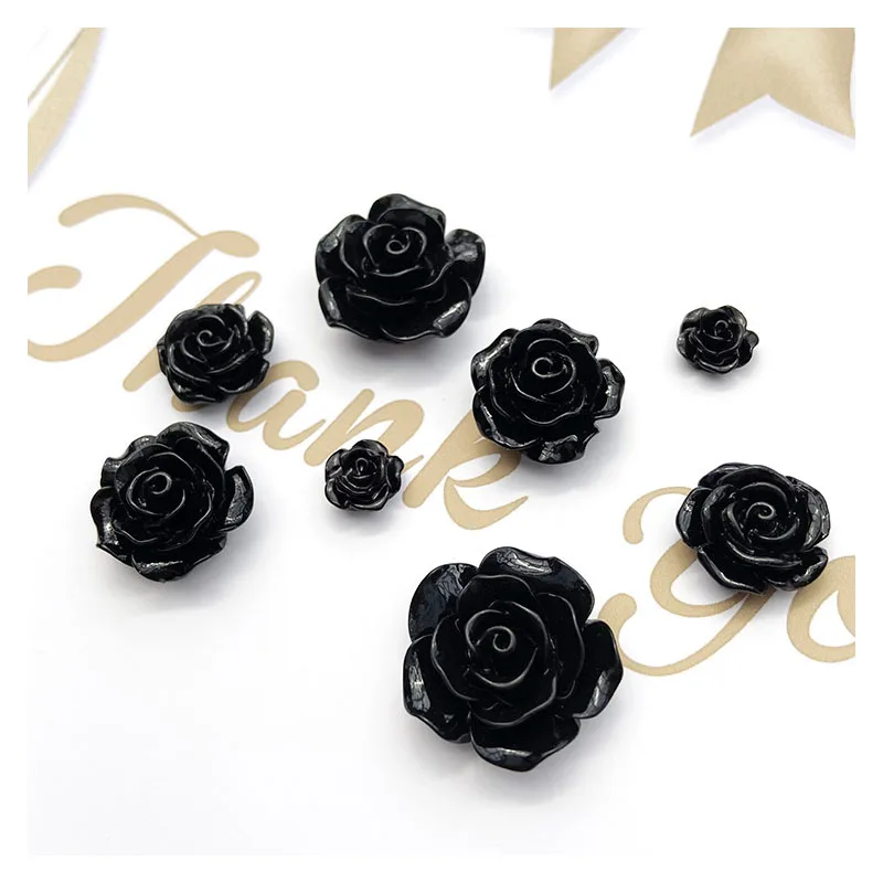 Breloques fleur noire 3D en résine, cabochon plat, bijoux DY...