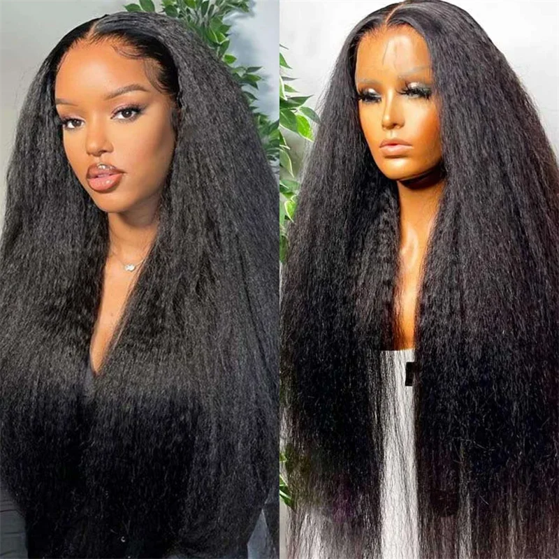 Kinky Straight HD Lace Front Human Hair Wig, Pré-plumé...
