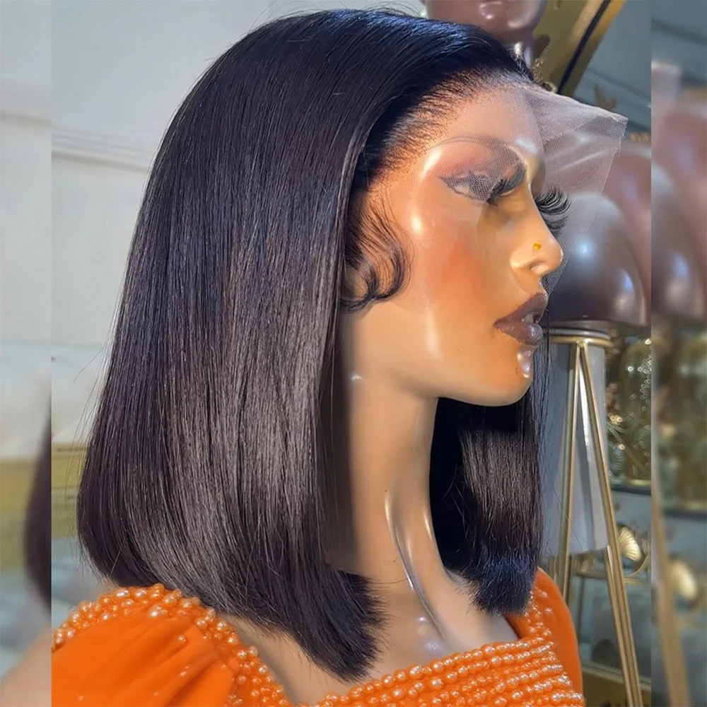250% Density Straight Human Hair Wig 13x6 HD Lace Frontal Wigs Natural Black Bob Wig 13x4 7x5 Gluele...