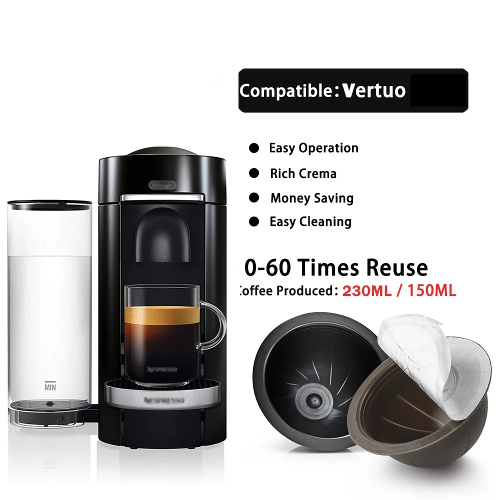Dosettes de café rechargeables compatibles avec la Machine Nespresso Vertuo Plus Delonghi ENV...