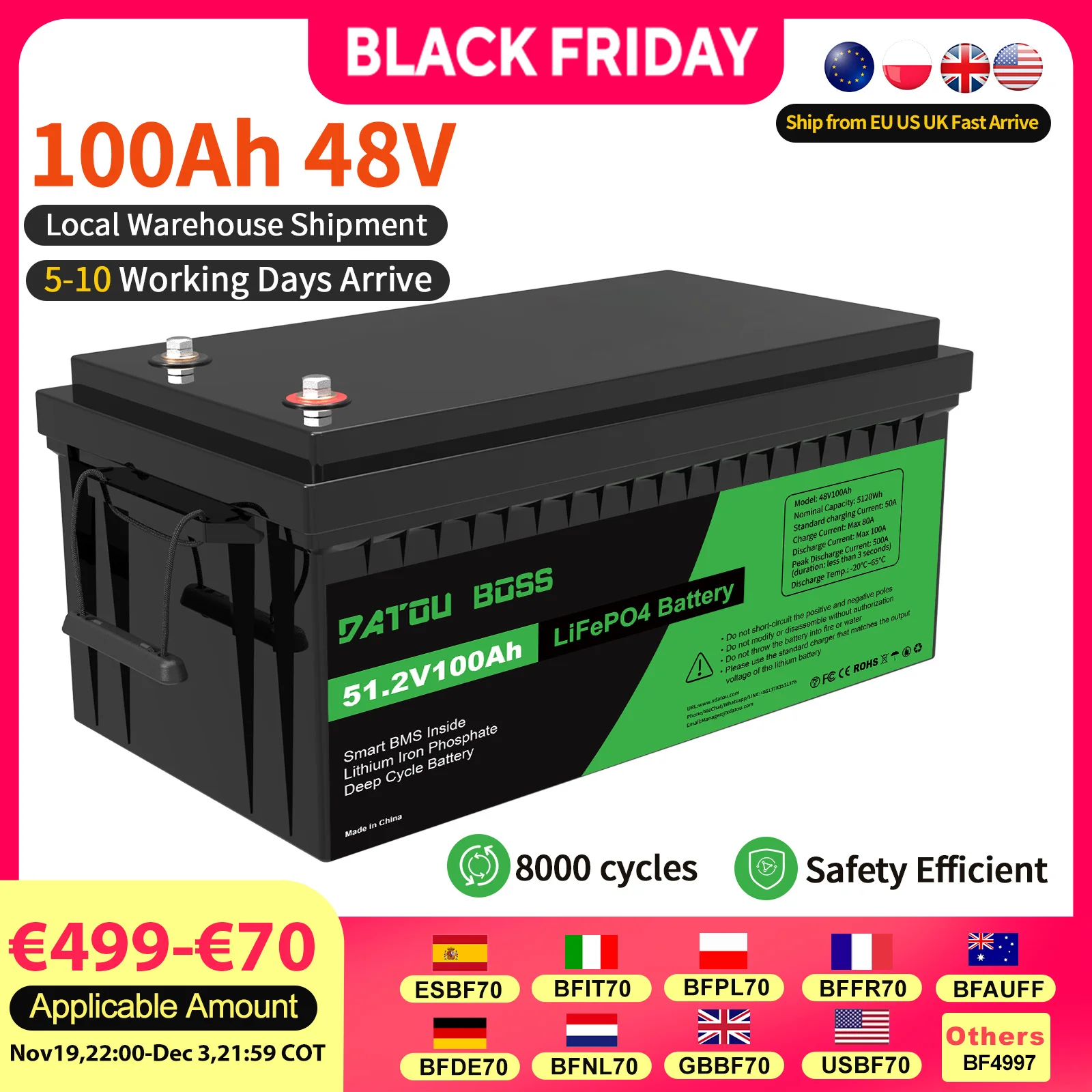 Ddtouboss 48v Lithium Battery 100Ah Peak Discharge Current 500A With Smart BMS Use for Inverters PV ...