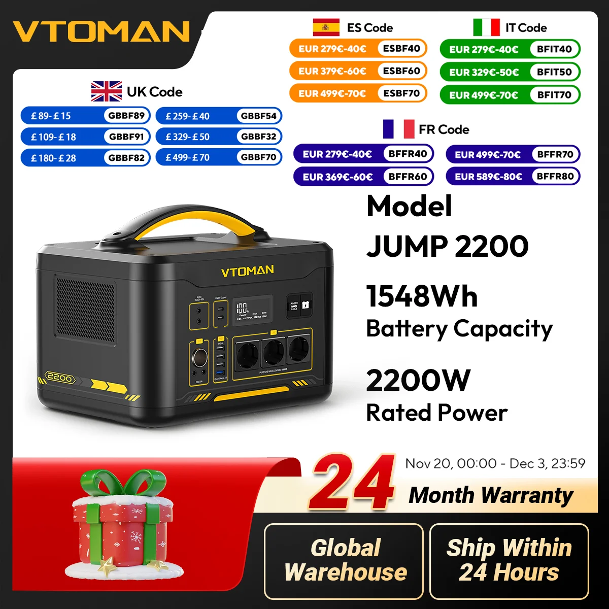 VTOMAN JUMP 2200 Station de Puissance 1548Wh Batterie LiFePO4 Sorti...