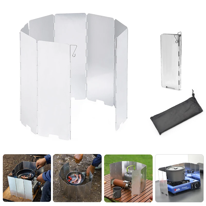 Pare-vent pliable pour poêle d'extérieur, 8/9/10 plaques, pare-brise Portable pour Camp...