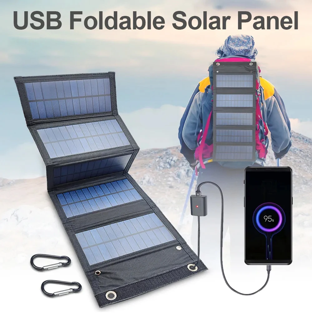 Panneau solaire pliable USB Portable, panneaux solaires pliants pour voyage, banque de chargement de...