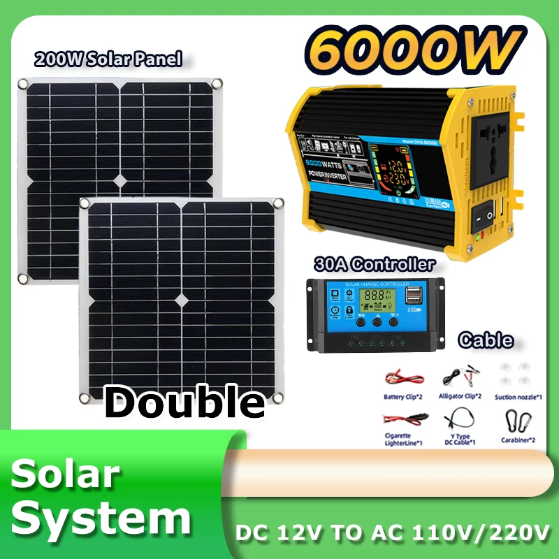 Kit panneau solaire 6000w 220v, plaque complète, prise domestique 400w, panneau solaire avec ...