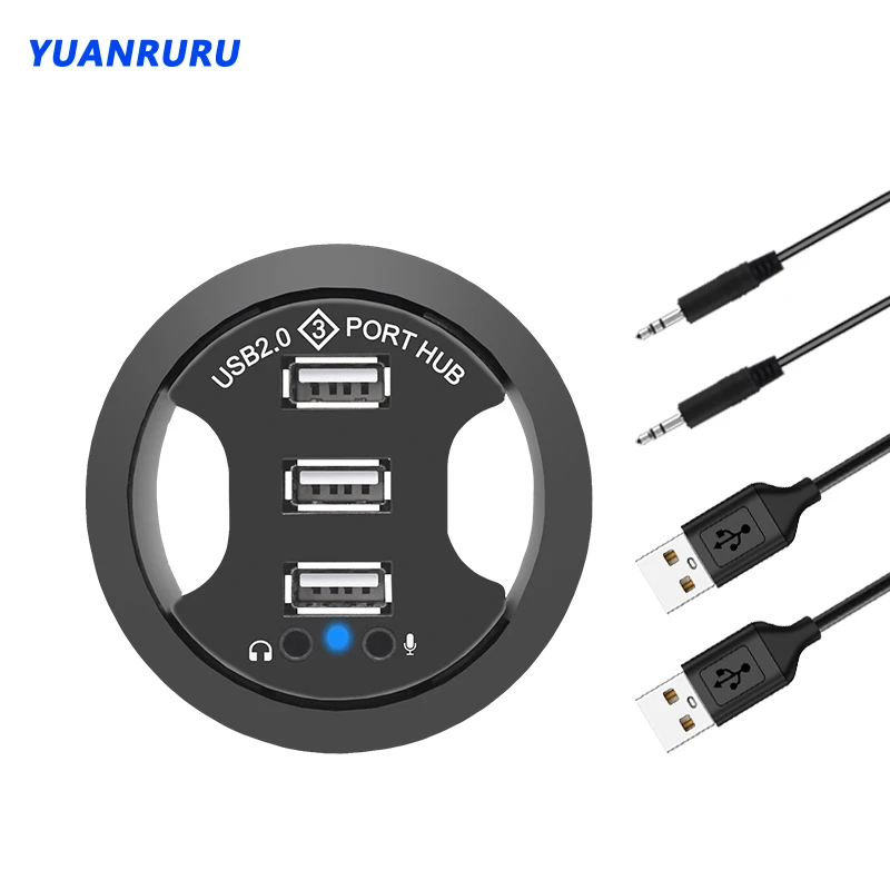 Hub USB USB 2.0 œillet de bureau USB 2.0 Hub Audio adaptateur de montage sur bureau 3 ports de...