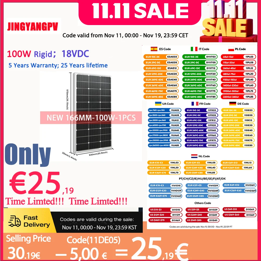 Xinpuguang Panneau solaire 100W 18V 1PCS ~ 10PCS 100 W panneaux solaires 12v 200W 18V Solar Panel 30...