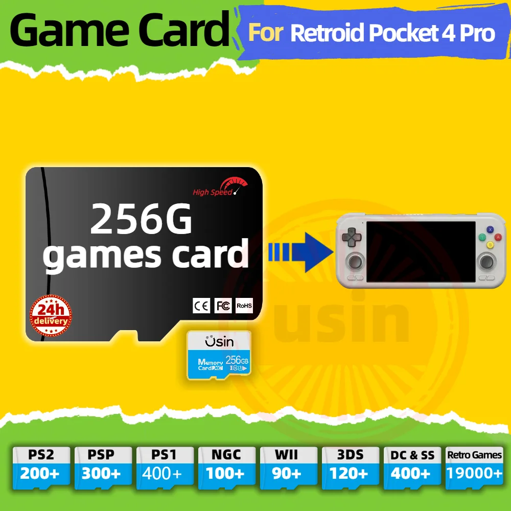 Cartes de jeu TF pour Retroid Pocket 4 PRO, console de jeu Android Flip, Playstation PS2, PSP, PS1, ...
