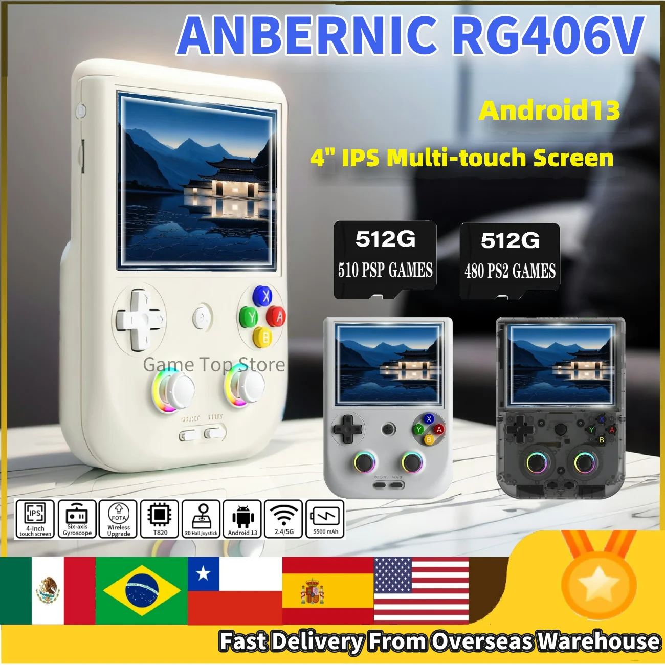 ANBERNIC RG 406V Console de jeu portable RG406V 4 "IPS écran multi-touch Android13 jeux ...