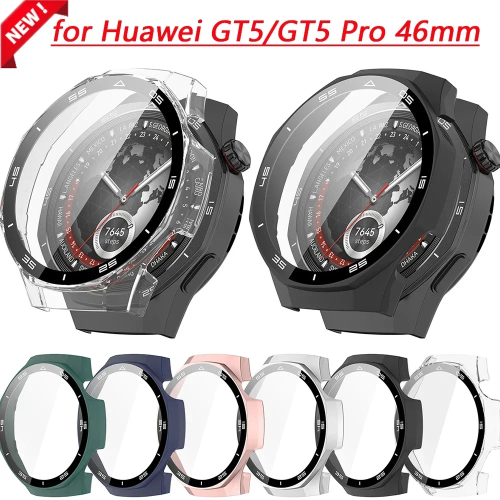 PC + boîtier en verre trempé pour Huawei Watch GT5/GT5 Pro 46mm couverture complè...