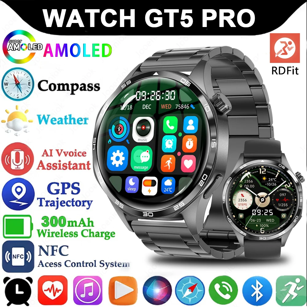 2025 nouveau pour Huawei Xiaomi montre GT5 Pro montre intelligente hommes AMOLED écran NFC GP...