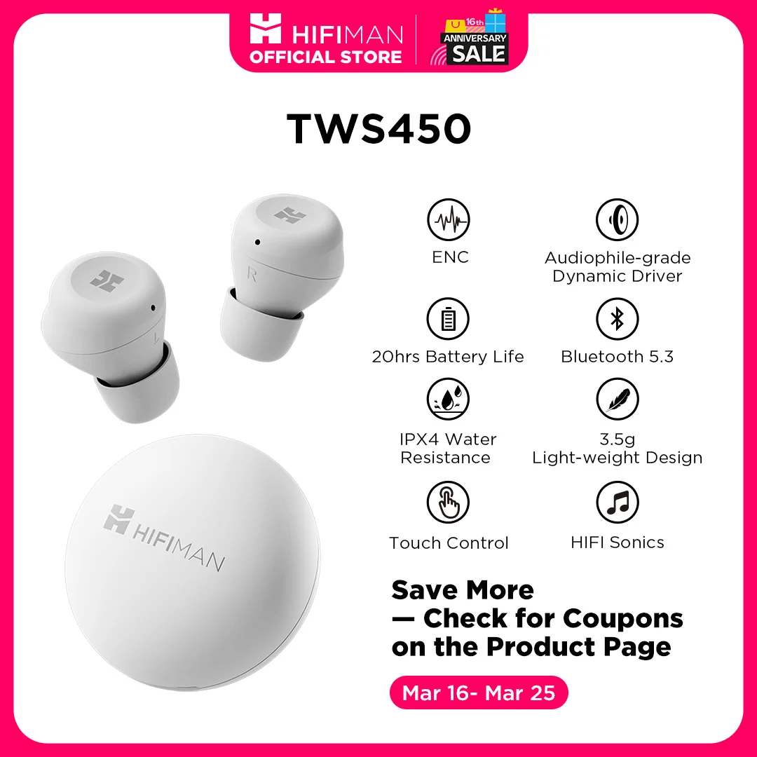 HIFIMAN TWS450 véritable casque stéréo sans fil avec suppression du bruit envir...