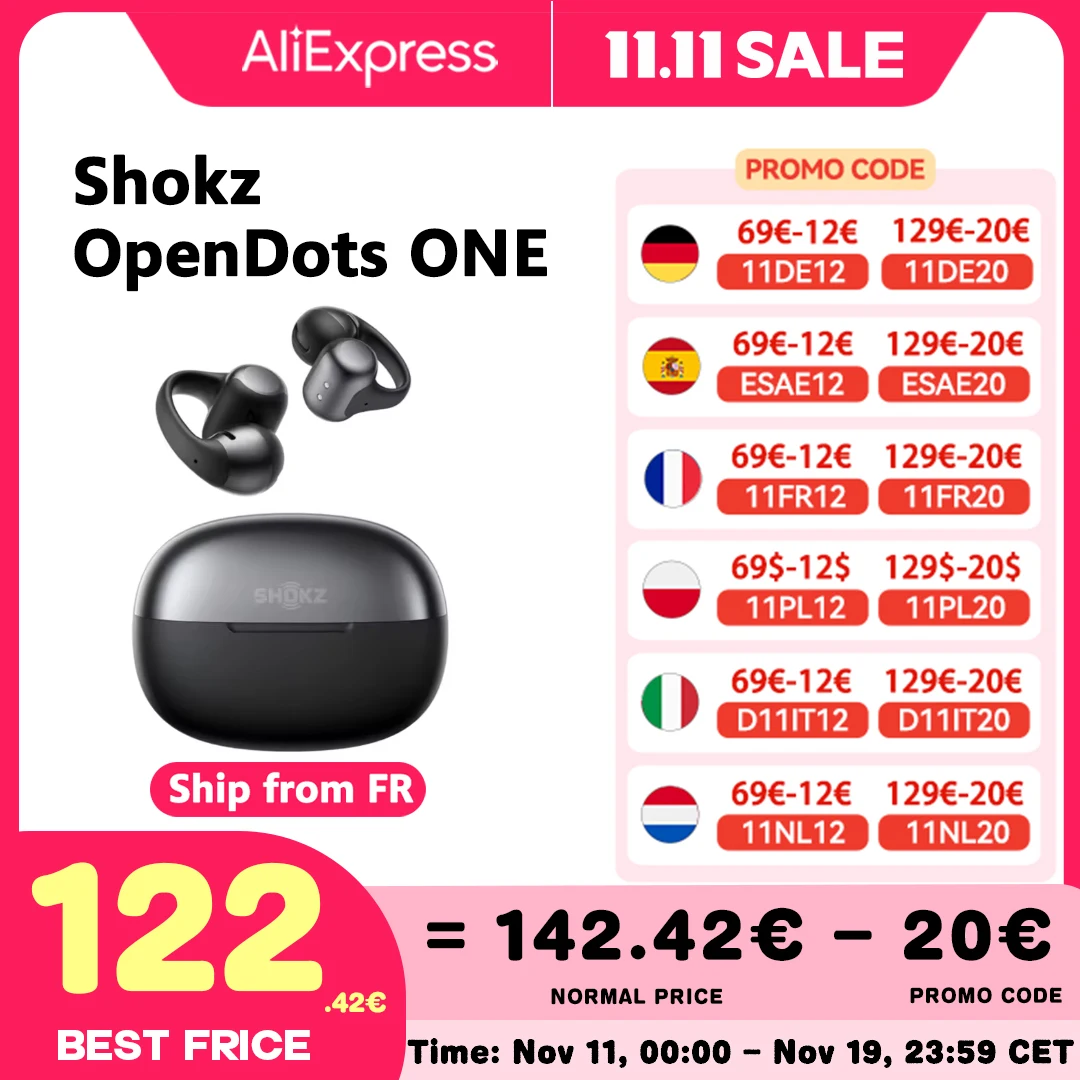 【NIVÉE UE】 SHOKZ OpenDots ONE casque Bluetooth sans fil ouvert V5.4 avec Microp...