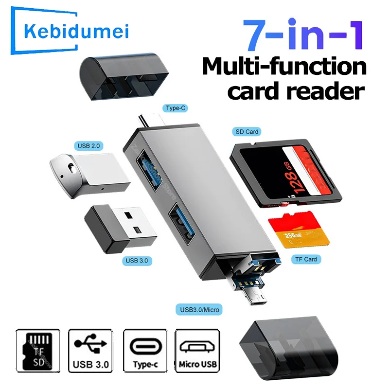 Lecteur multi-cartes 7 en 1 USB 3.0 Type C vers SD TF, clé U...