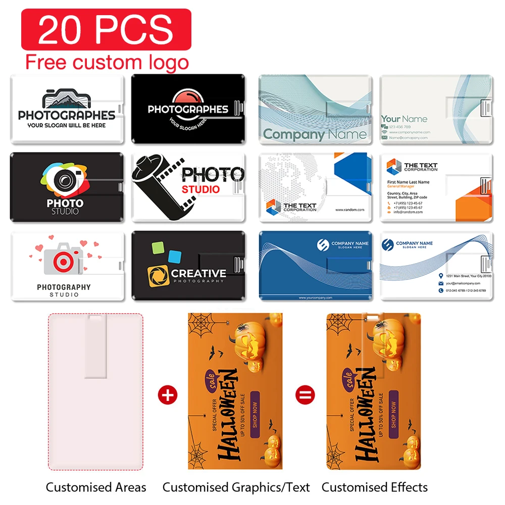 100 pièces modèle de carte de crédit clé USB 16GB carte mémoire 3...