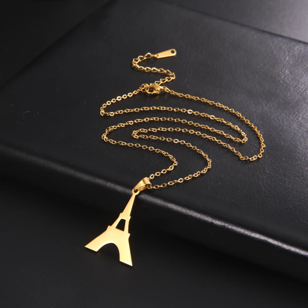 Cazador-Pendentif Tour Eiffel en Or pour Femme, Colliers de la raq, Bijoux en Acier Inoxydable, Vent...