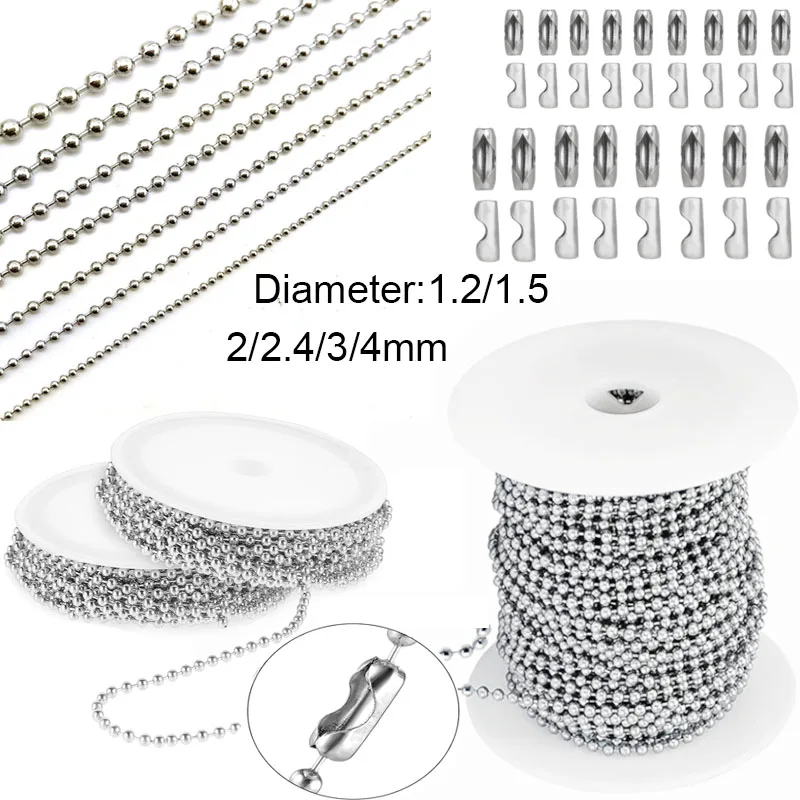 Chaîne à billes en acier de 5m, chaîne de perles, chaînes de collier de per...