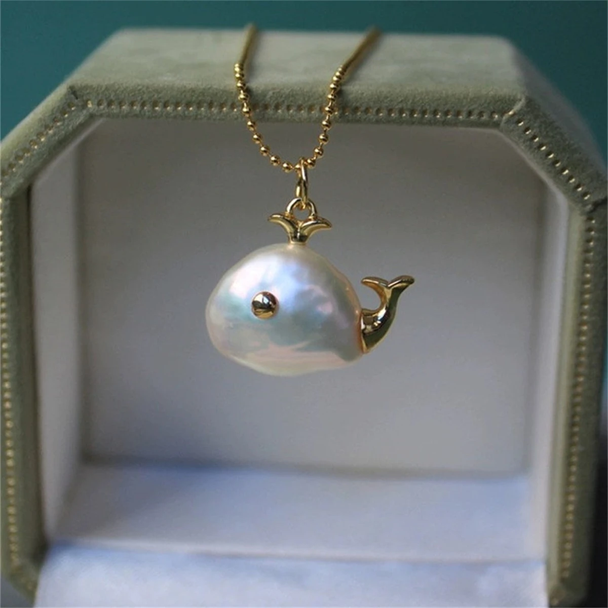 Collier baleine baroque, perle extraterrestre, pendentif vie marine, chaîne de clavicule, ense...