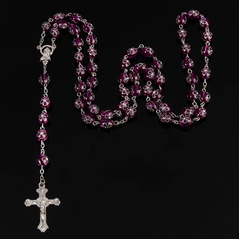 Chapelet de perles de cristal catholique chapelet catholique Premium collier de croix de perles coll...