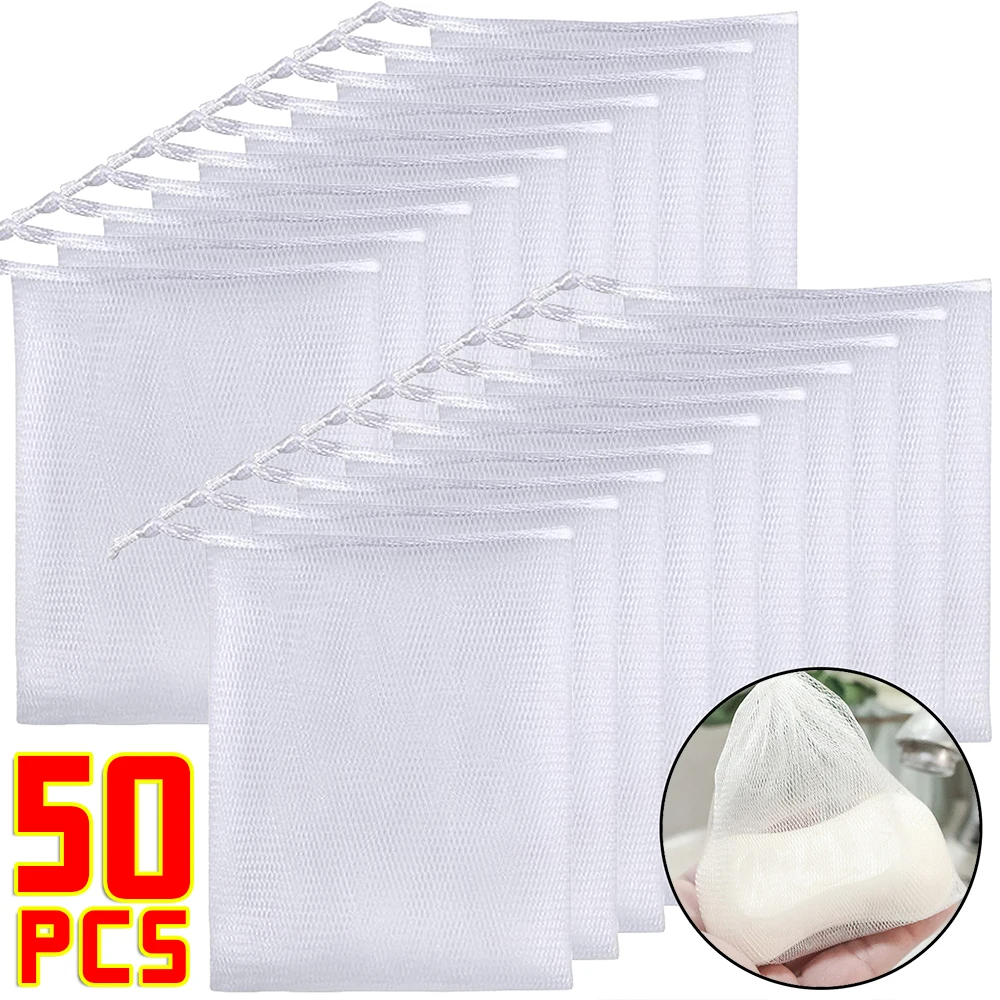 Sacs en filet moussant pour savon, 1/50 pièces, nettoyant pour le visage, sac à cordon...