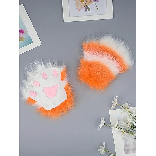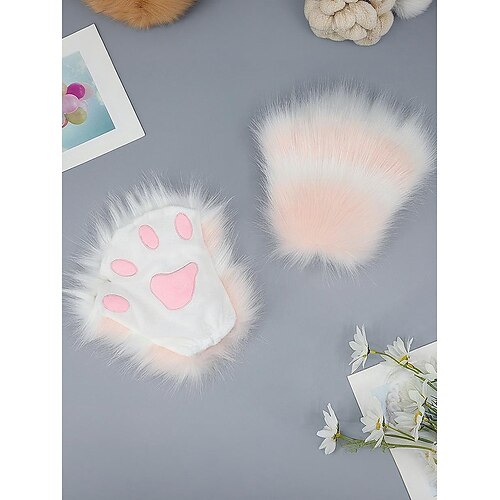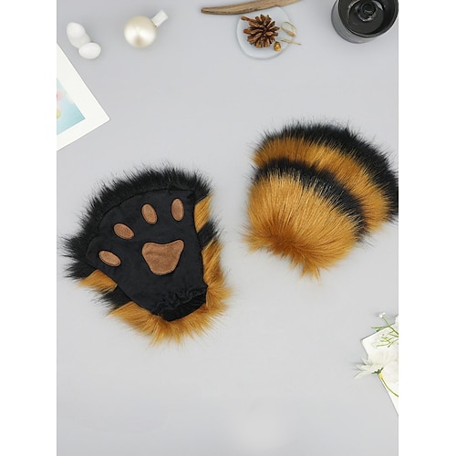 Gants d'Halloween en peluche pour femmes, motif pattes d'animaux &n...