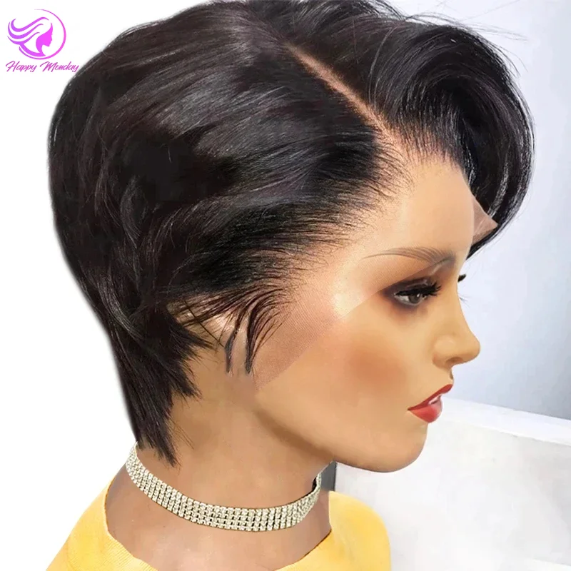 Perruque Brésilienne Naturelle de Coupe Pixie, Cheveux Courts et Lisses, 13x4, Partie HD, 100...