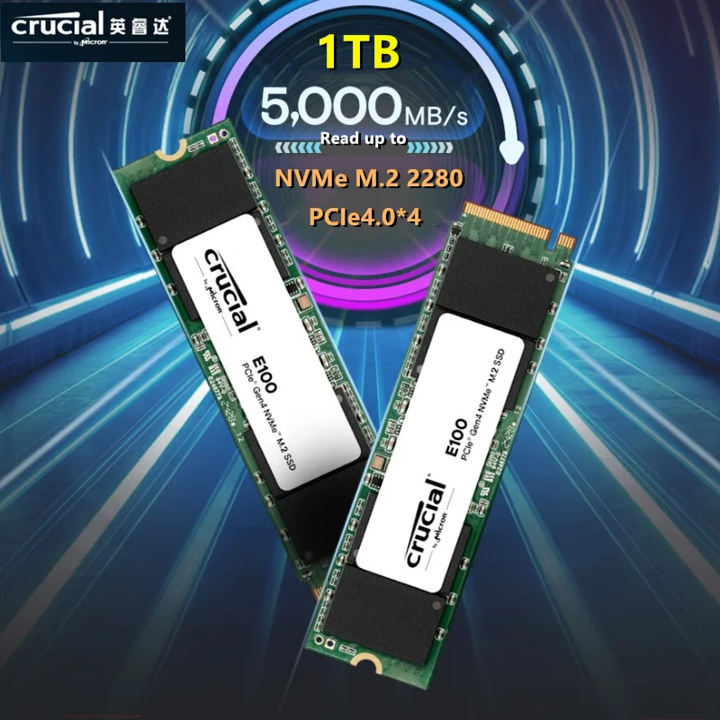 SSD crucial E100 480 go 1 to PCIe 4.0 Gen4 2280 NVMe M.2 disque SSD pour ordinateurs de bureau embal...