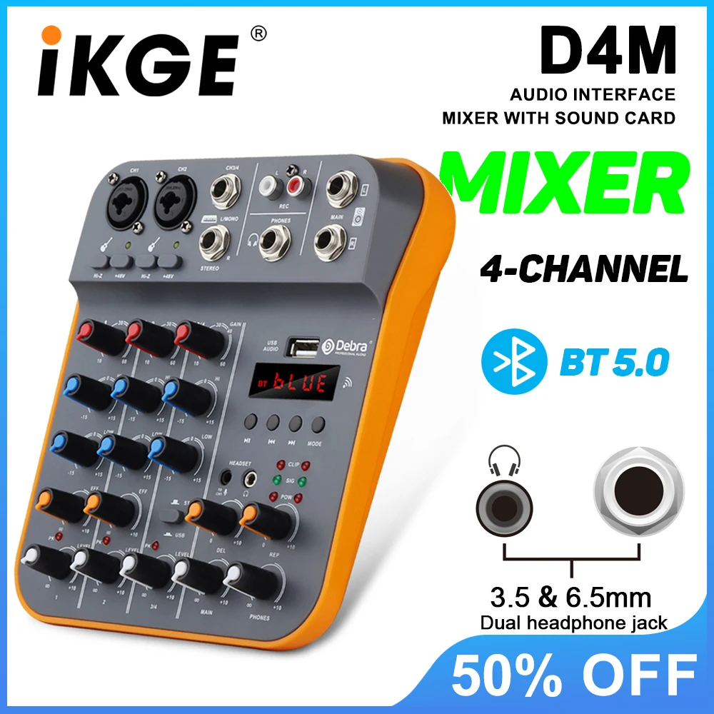 IKGE D4M Mini table de mixage audio 4 canaux, console DJ avec réverbération Bluetooth ...