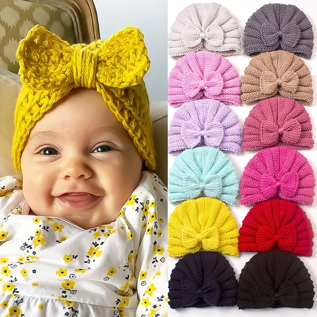 INS Baby Bow Knit Hat - Bonnet chaud d'hiver extensible avec fil po...