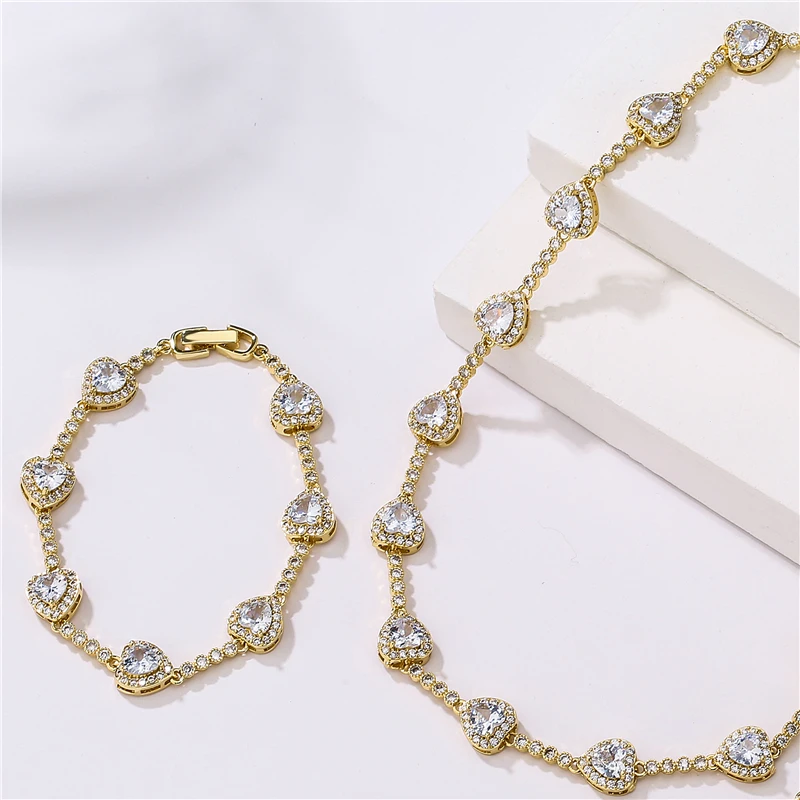 HECHENG, CZ coeur Tennis lien chaîne Bracelet collier pour femmes cadeaux d'anniversaire glac&...
