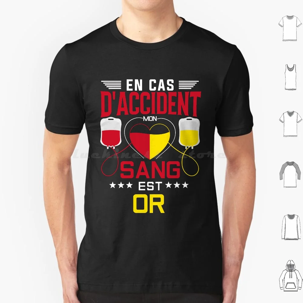T-Shirt Grande Taille 100% Coton, En Cas d'Accident, My Blood Is Gold, Rc Lens, Lensois Lensoise, Fr...