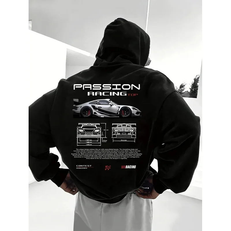 Sweat à capuche décontracté pour hommes imprimé alphabet coupe ample-Tem...