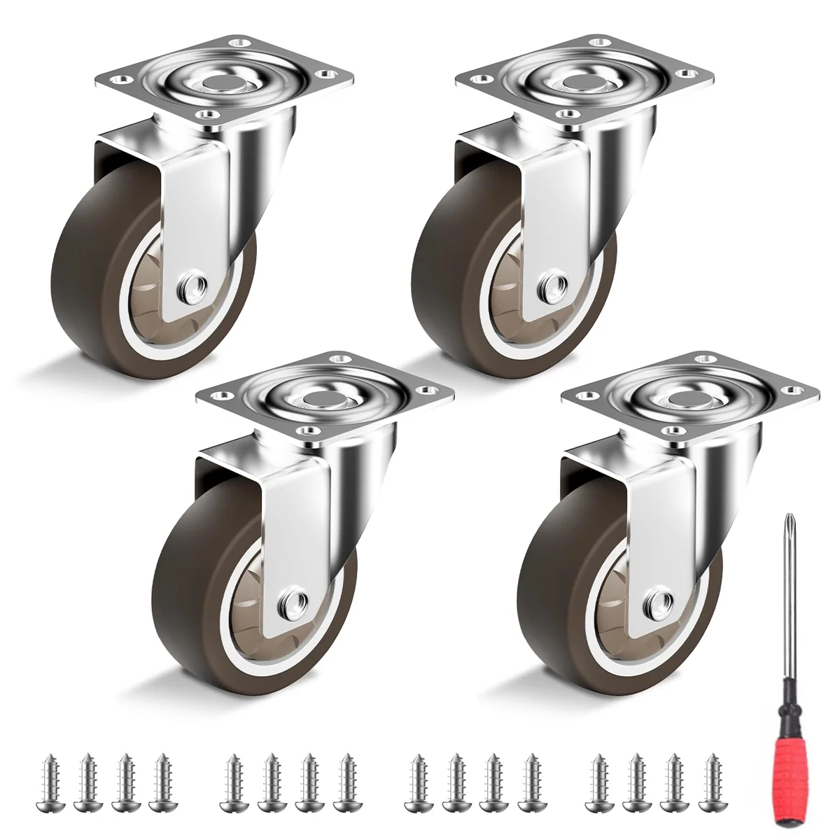 Roulettes de 2 pouces, ensemble de 4 roulettes pour meubles robustes, roulettes en caoutchouc sans b...