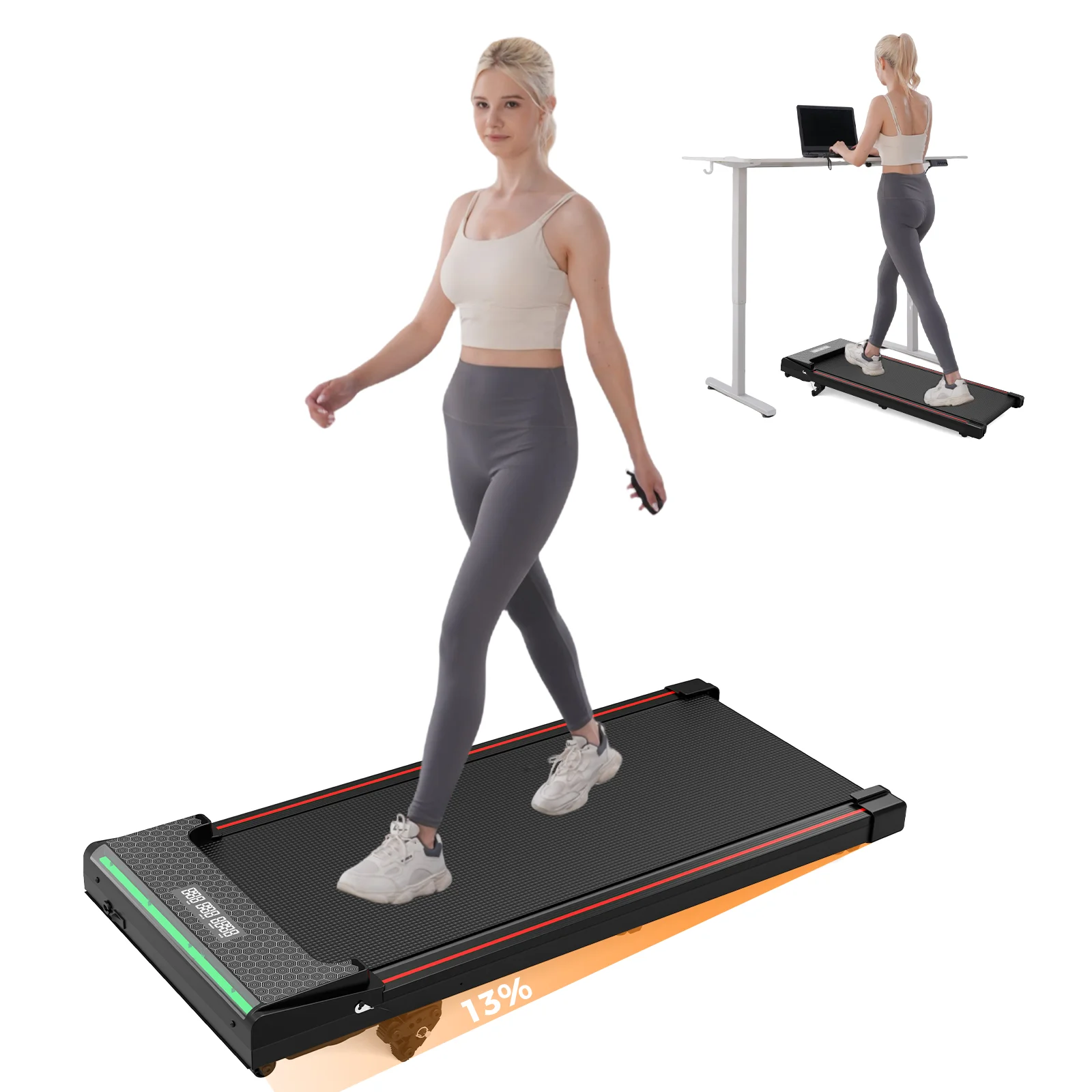 Formill FT-51 Tapis de marche 2 en 1, tapis roulant pliant jusqu'à 10 km/h, avec affichage LE...