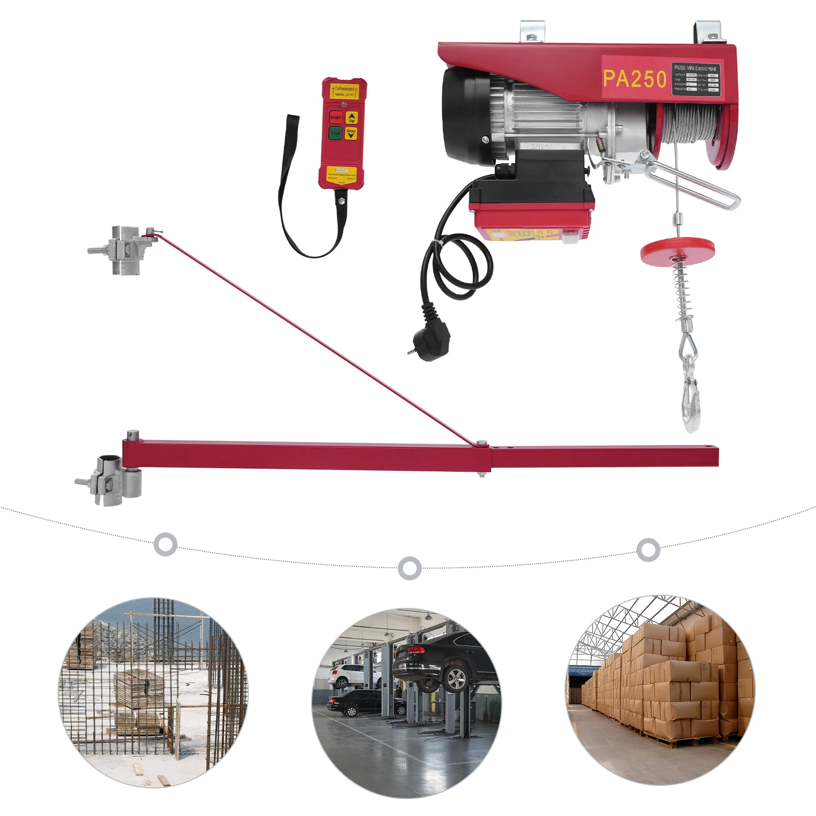 Palan électrique à Double corde de 250kg, grue de levage de 12m/39.37 pieds, 550w, tre...
