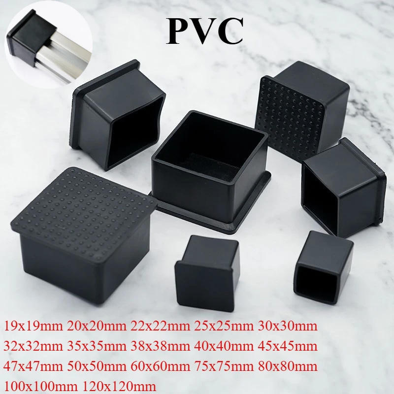 Manchon de tuyau carré en caoutchouc souple PVC noir, capuchon de Tube, coussin de pied de ch...