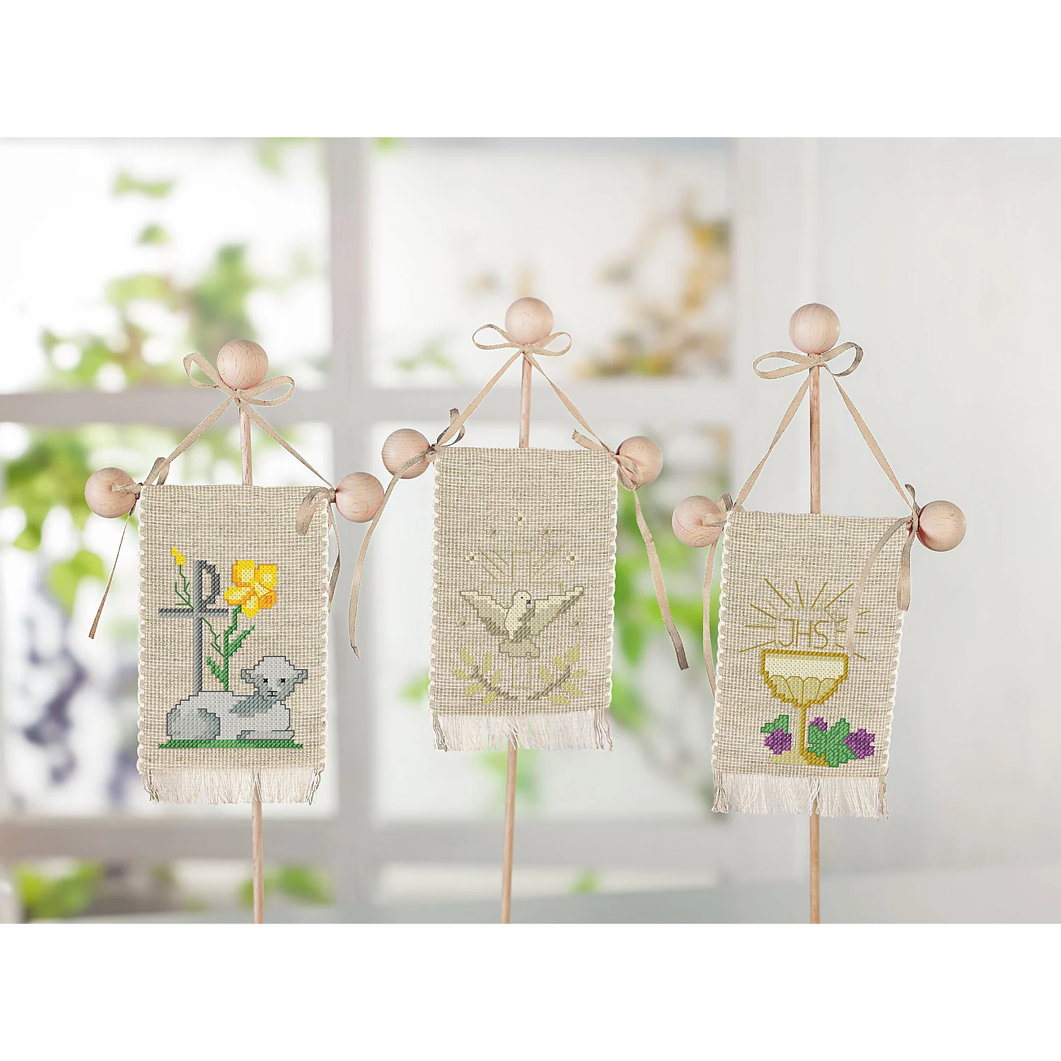 Kit de broderie - Drapeaux symboles de Pâques, à broder au point de croix, set de 3 dra...
