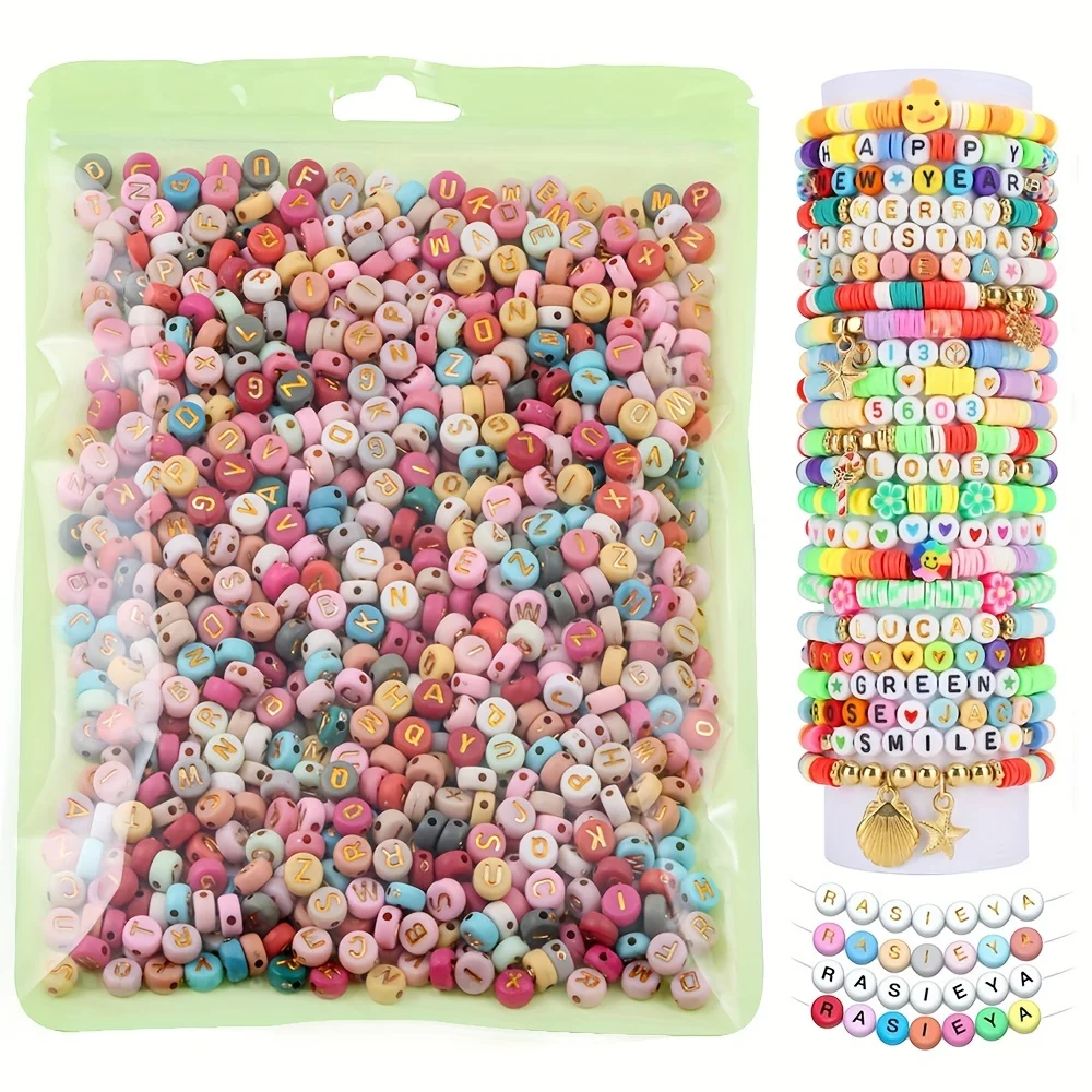 500/1000 pièces 4x7mm perles Alphabet rondes perles acryliques colorées avec perles Al...