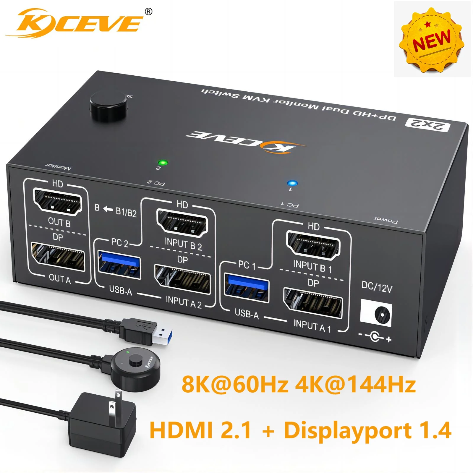 Commutateur KVM double moniteur 8K, Commutateur KVM DisplayPort HDM...