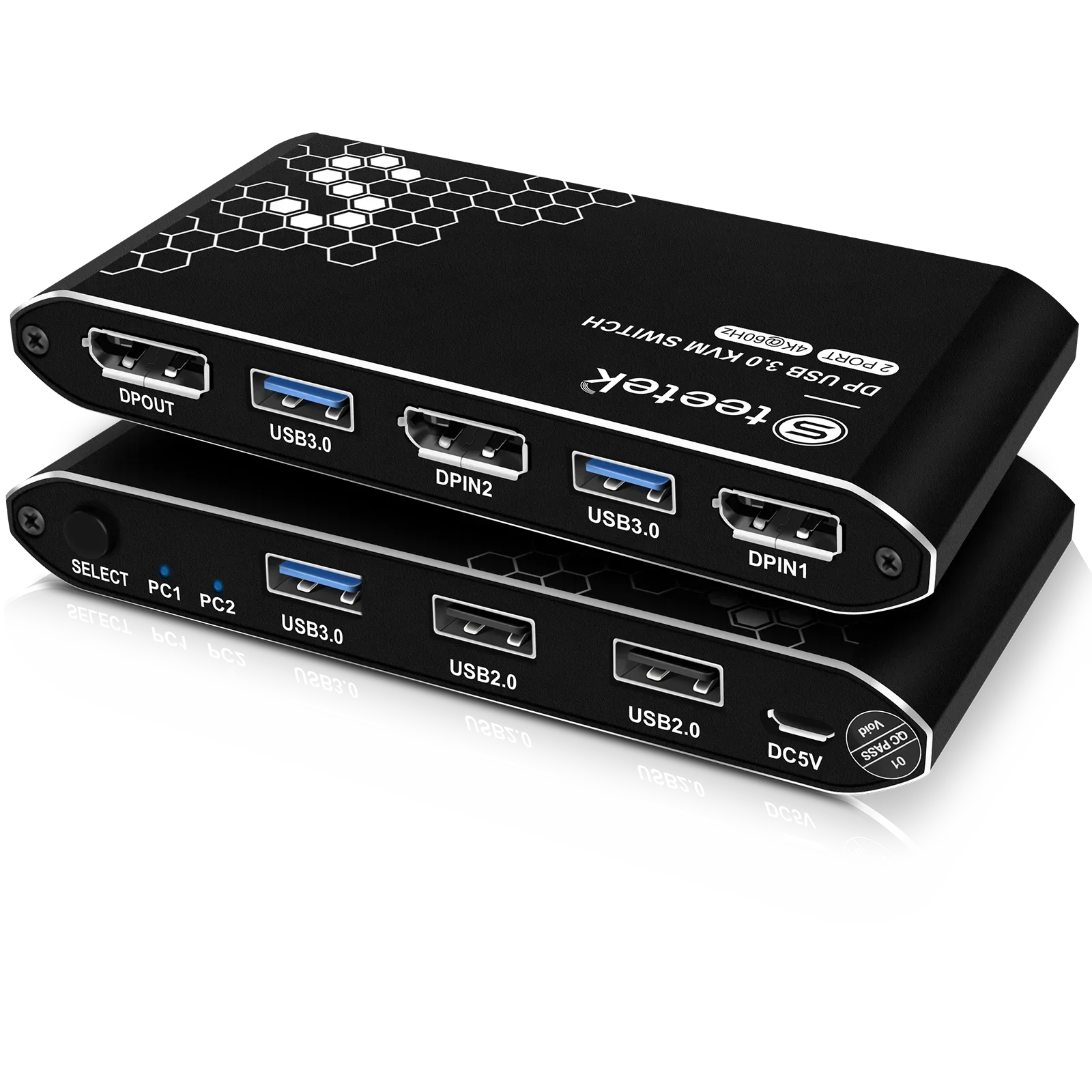 Commutateur KVM DP, 2 ports, résolution 4K @ 60Hz, permet le partage de deux moniteurs ou de ...