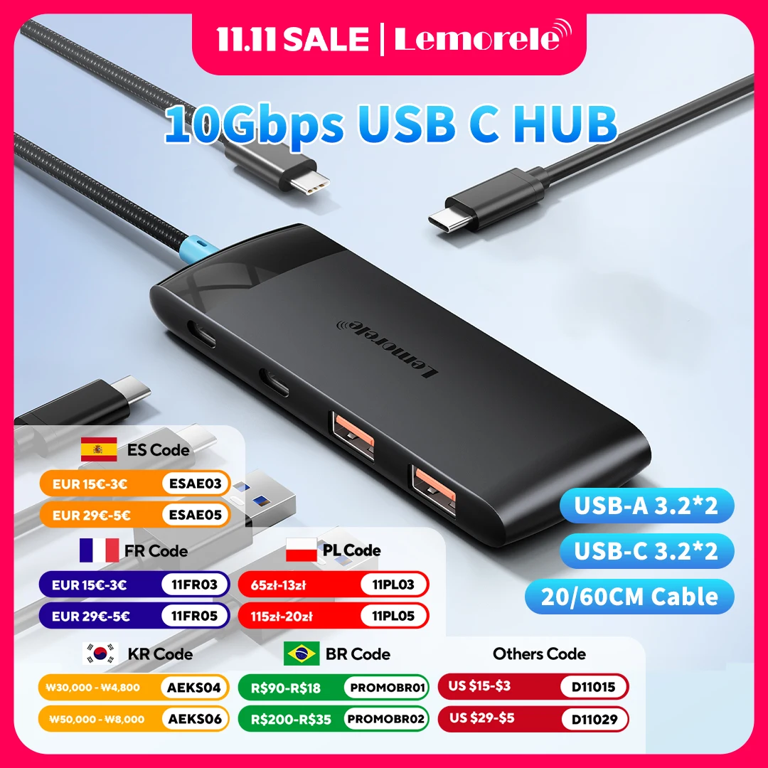 Lemorele-airies 4-en-1 USB C TC109, 10Gbps, haute vitesse, type C v...