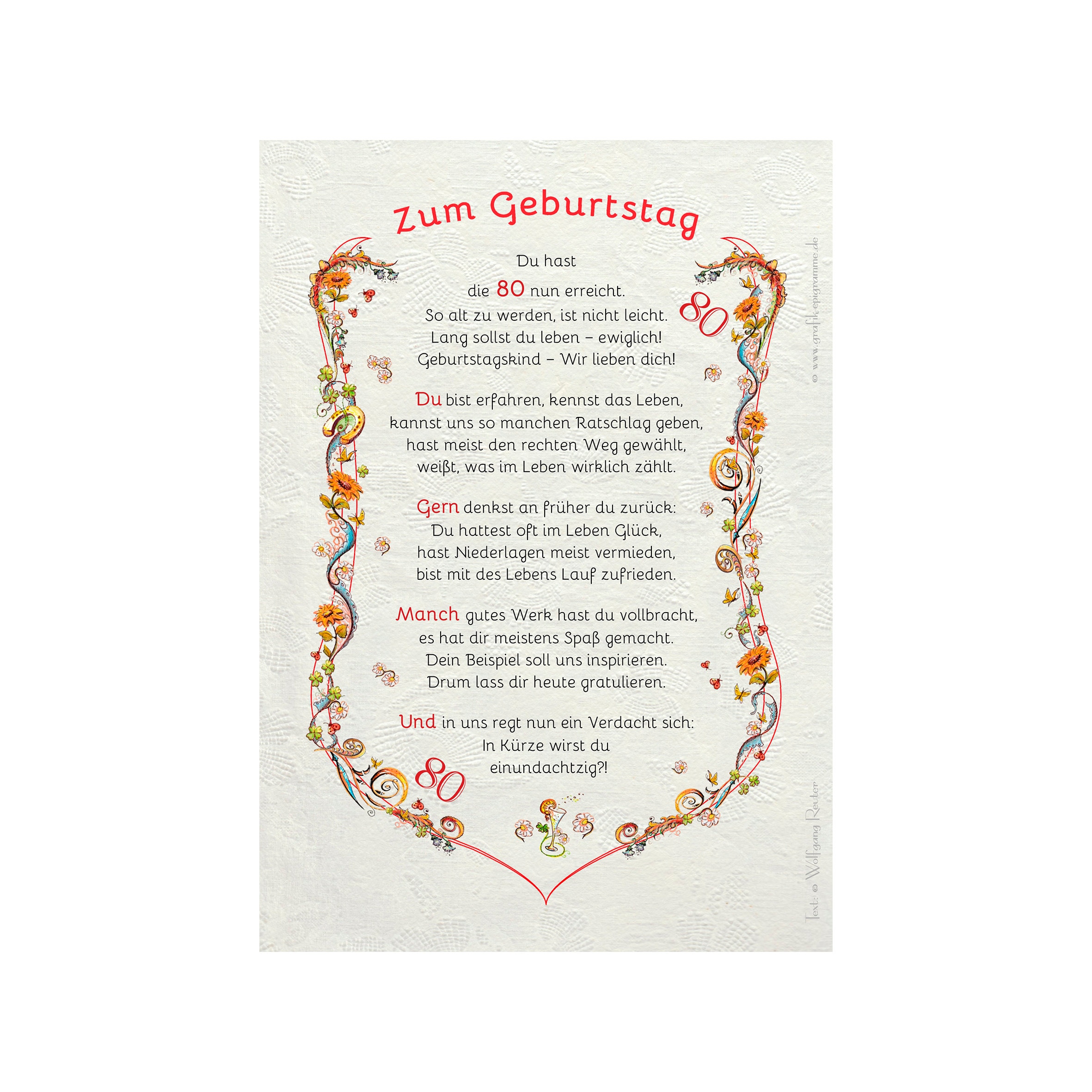 Certificat de carte cadeau 80e anniversaire, dessin avec poè...