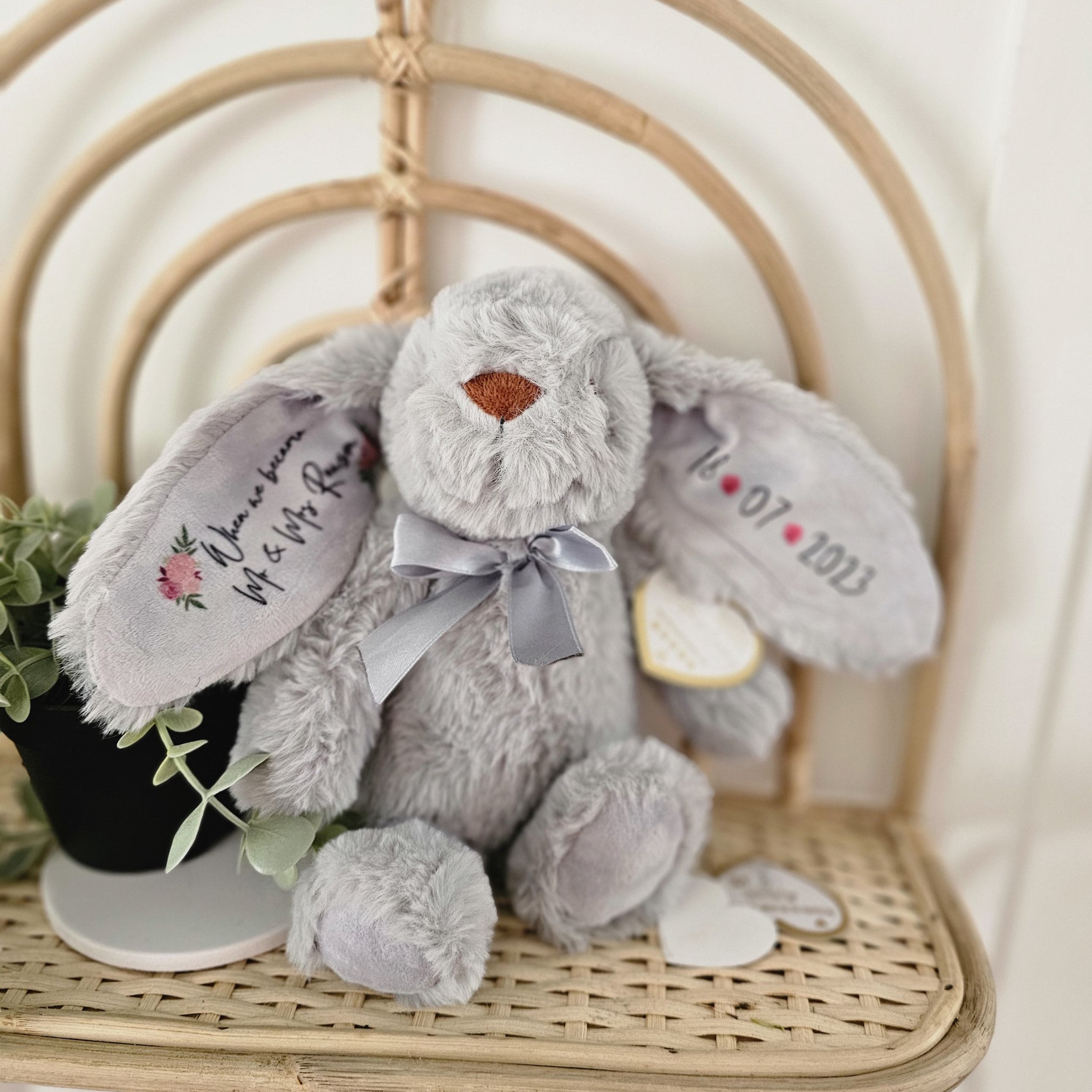 Vous cherchez le cadeau de mariage parfait ou une faveur ? Nos lapins gris personnalisés sont...