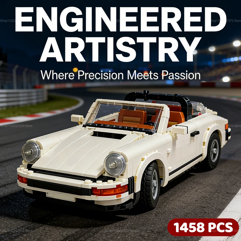Ensemble de blocs de construction de voitures rétro 1458 pièces, 2 en 1, voiture de co...