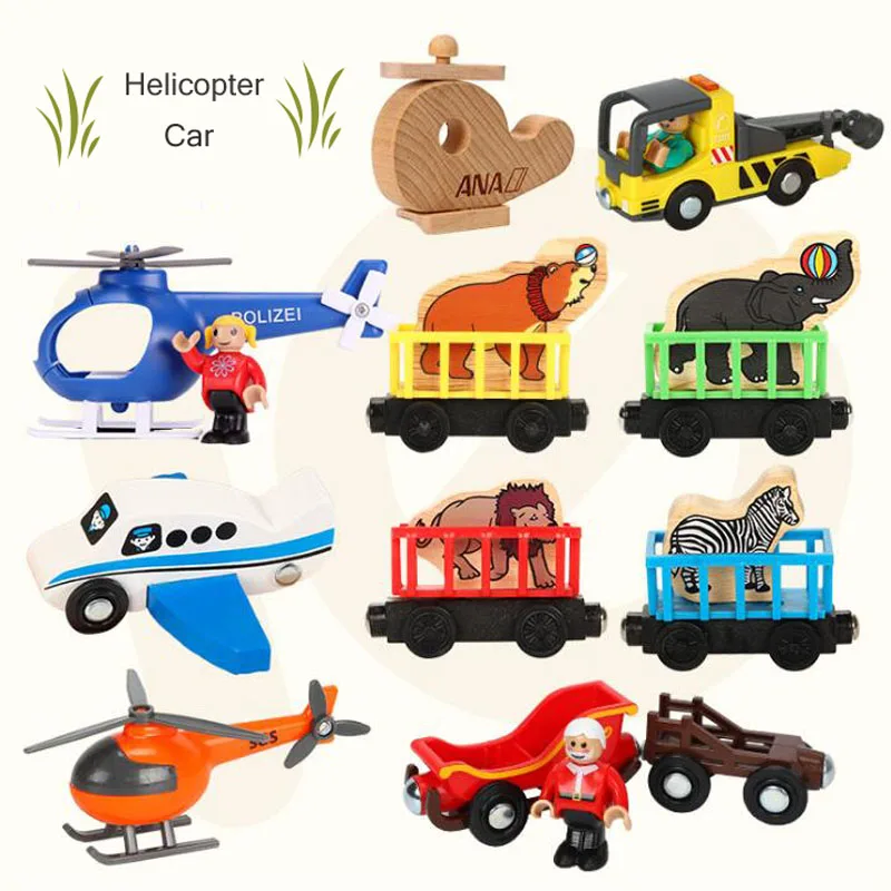 Jouet de Train magnétique en bois, hélicoptère ferroviaire en bois, voiture cam...