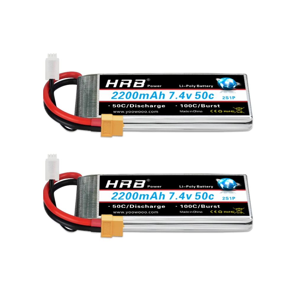 1/2pc HRB 7.4V 2200mah RC batterie 2S Lipo batterie 50C avec connec...