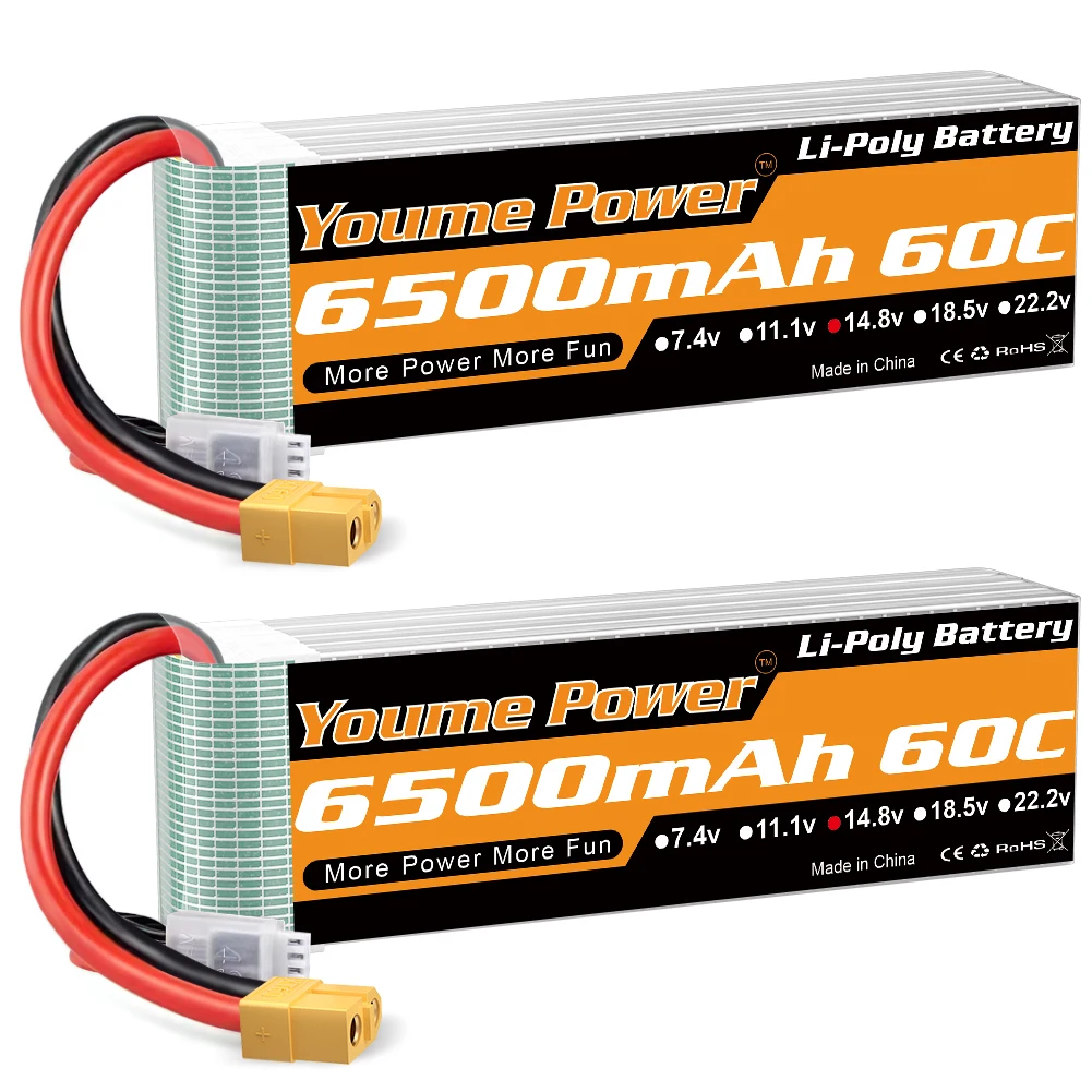 YOUME POWER 4S 14.8v 6500mah batterie Lipo avec connecteur XT60 60C RC Lipo pour RC voiture camion m...
