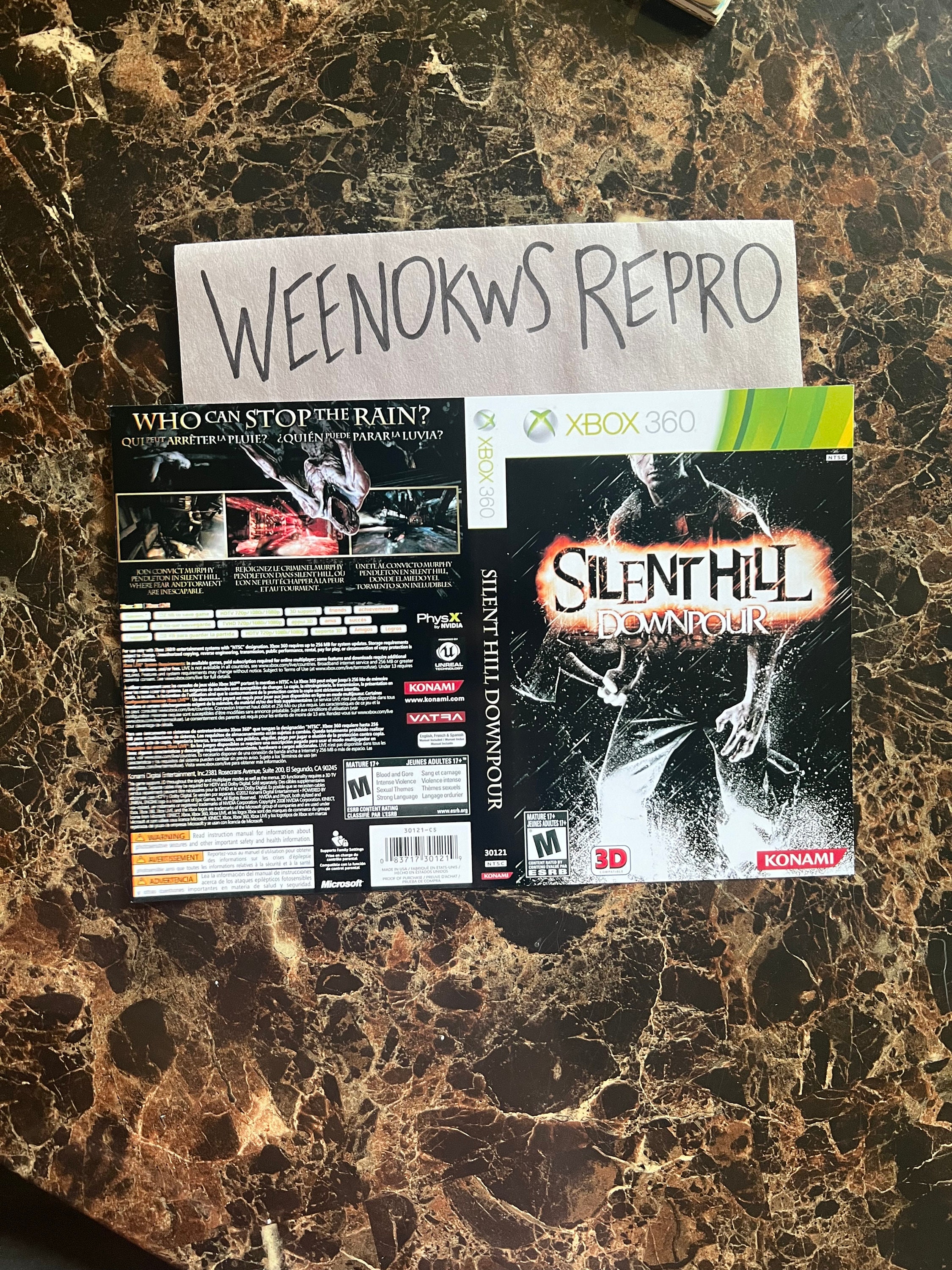 Silent Hill Downpour REPRODUCTION D'ART UNIQUEMENT Aucun cas ! Xbox...
