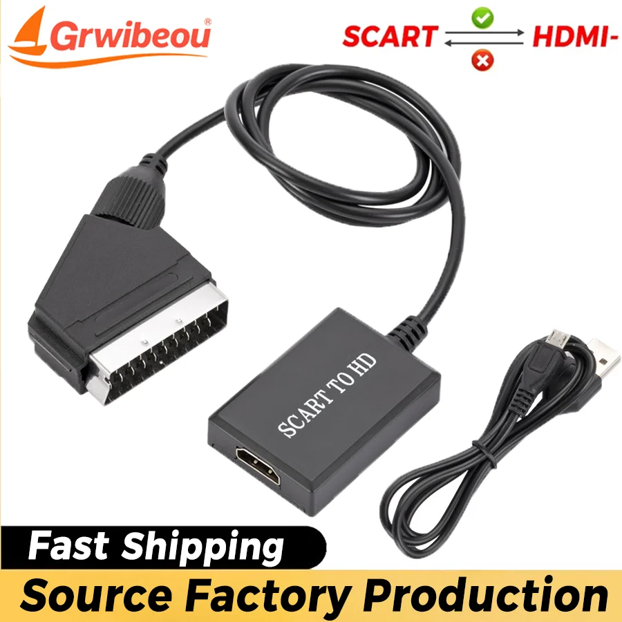 Convertisseur péritel vers HDMI, adaptateur Audio vidéo pour TV HD DVD HDTV Sky Box ST...