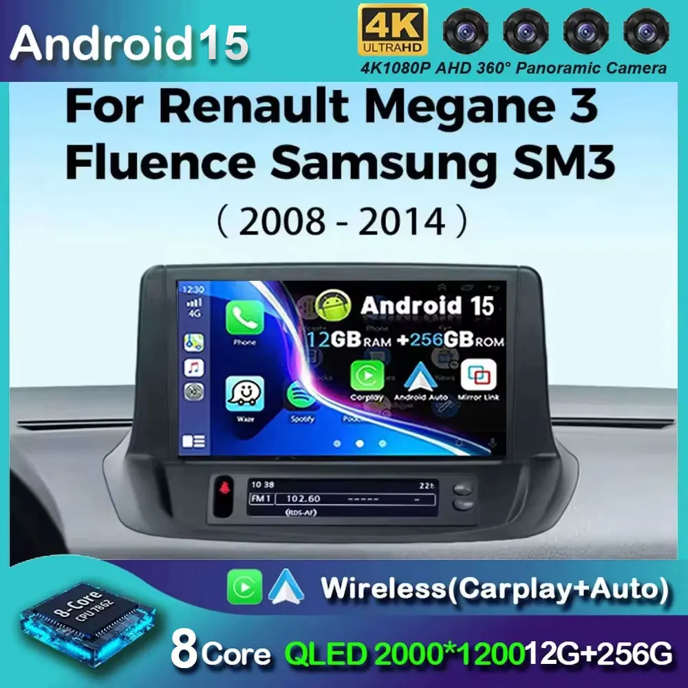 Autoradio Android 15 pour Renault Megane 3 Fluence Samsung SM3 2008-2014 lecteur sans fil Carplay Au...